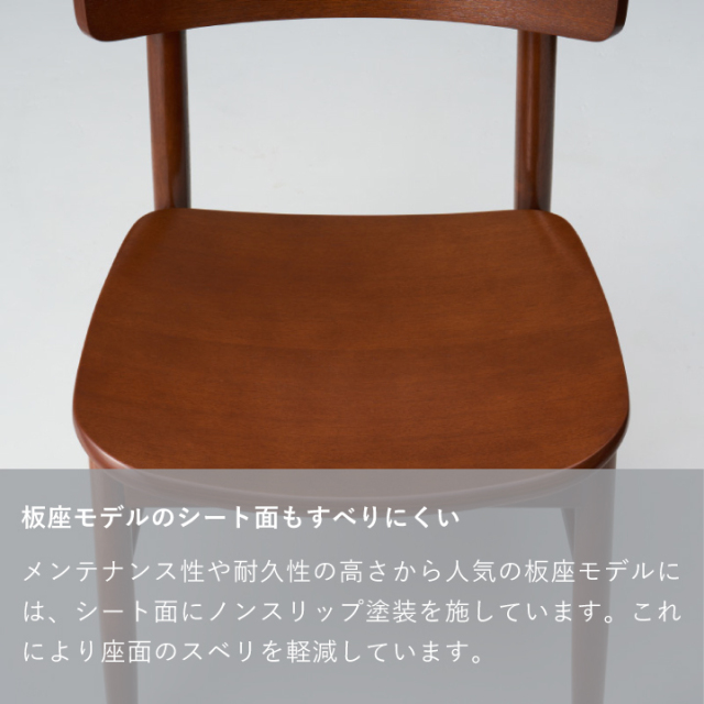板座タイプのシートは、シート表面にノンスリップ加工を施していますので、板座特有のお尻の滑りがなく快適にお使いいただけます。